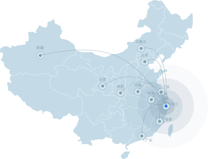 覆蓋浙江全省,以及北京、江蘇、福建、安徽、甘肅、陜西、新疆、河南等11個省份